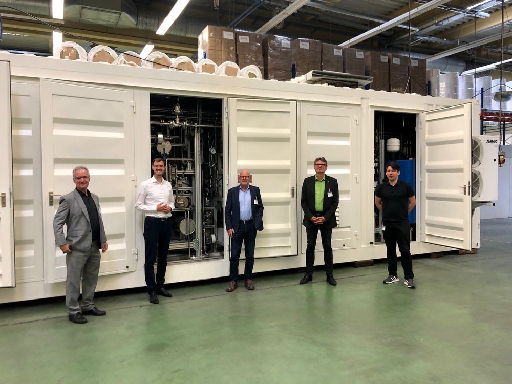 Im Rahmen seiner Sommertour besucht Verkehrsminister Winfried Hermann MdL gemeinsam mit Thomas Hentschel und dem zuständigen Wahlkreiskollegen Alexander Salomon die Firma INERATEC in Karlsruhe.