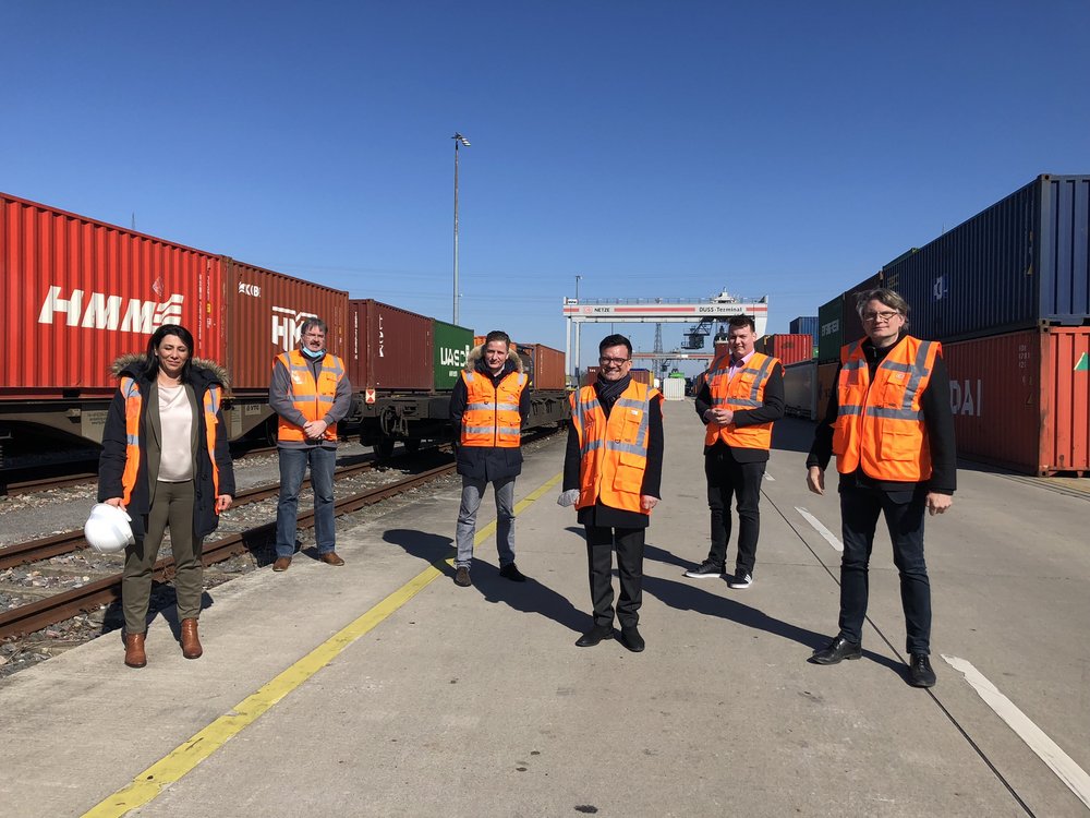 Die Auswirkungen des Strukturwandels auf den Güterverkehr und die Umsetzung des Güterverkehrskonzeptes des Landes Baden-Württemberg waren Themen des Besuchs der Grünen Landtagsabgeordneten Thomas Hentschel MdL und Niklas Nüssle MdL in der Containerumschlagstation DUSS in Kornwestheim. In den Gesprächen mit Andreas Schulz, dem Geschäftsführer der DUSS (Deutsche Umschlaggesellschaft Schiene-Straße mbH), Andrea Marongiu (Geschäftsführer VSL - Verband Spedition und Logistik Baden-Württemberg) und Vertretern des Umschlagbahnhofs in Kornwestheim erörterten die Abgeordneten die Möglichkeiten, die Kapazitäten des Güterverkehrs auf der Schiene auszuweiten.