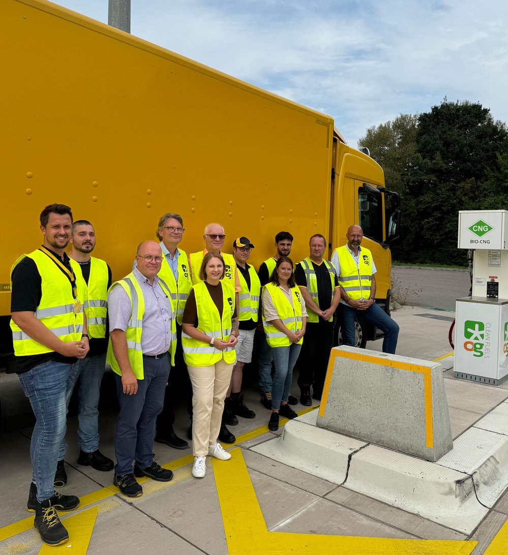 Neben dem weiter wachsenden öffentlichen Tankstellennetz von OG hat das Unternehmen für DHL eine maßgeschneiderte Infrastruktur realisiert. Während DHL bei den kleinen Transportern für die sogenannte letzte Meile auf E-Fahrzeuge setzt, wird das Ziel der klimaneutralen Logistik bei die schweren Lkw mit Bio-CNG erreicht. Bei dem Besuch der CNG-Tankstelle in Lahr wurde den beiden Abgeordneten die Tankinfrastruktur sowie auch der Tankvorgang selbst gezeigt. Innerhalb von zehn Minuten ist ein Gas-LKW betankt und kann mit einer Tankkapazität von 120 bis 180 Kilogramm 500 bis 700 km weit fahren.