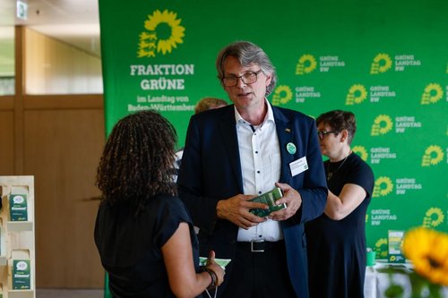 Am 29. Juni 2024 fand im Landtag das Bürgerfest unter dem Motto „Deine Freiheit. Mein Respekt – 75 Jahre Grundgesetz“ statt. Eingeladen waren alle interessierten Bürger und Bürgerinnen. Für die Grüne Fraktion stand dabei die Begegnung und der Dialog mit den Bürgern und Bürgerinnen im Mittelpunkt. Die Grüne Fraktion war unter anderem mit ihrem Informationsstand vertreten. Dort war auch ein persönlicher Austausch mit Thomas Hentschel über die Arbeit der Fraktion möglich. Später am Tag war Thomas Hentschel beim Programmpunkt „Fragen erwünscht – Abgeordnete an ihrem Arbeitsplatz“, um dort die interessanten Fragen der Bürger und Bürgerinnen zu beantworten.