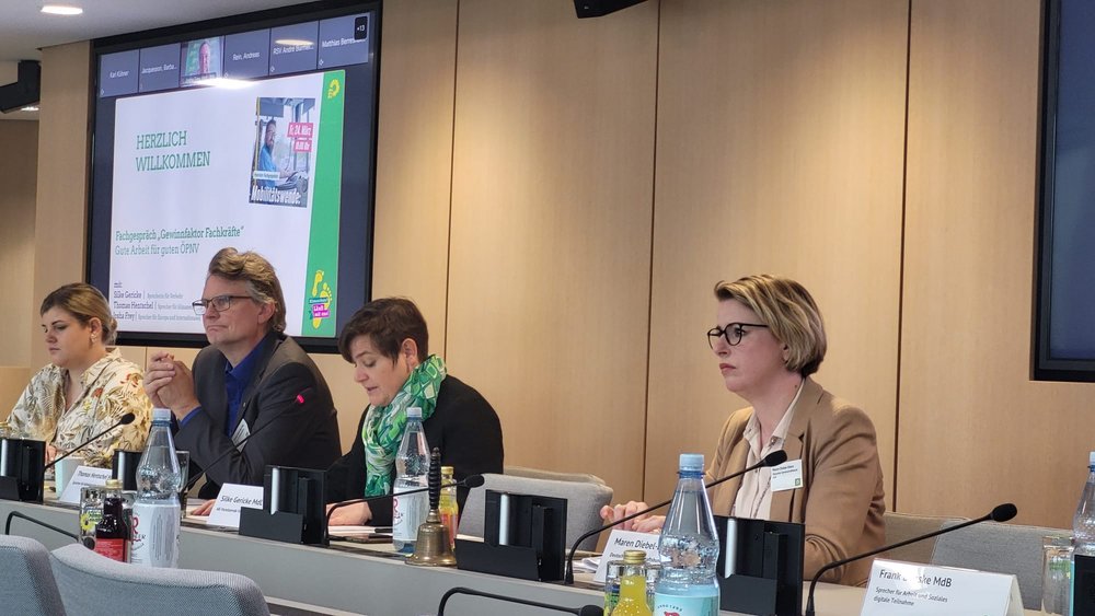 Um die Mobilitätswende wirklich zu schaffen und die Fahrgastzahlen in Bussen und Bahnen bis 2030 zu verdoppeln, müssen wir nicht nur unsere Angebote im öffentlichen Nahverkehr ausbauen, sondern auch gute Leute dafür gewinnen. Weil es immer mehr öffentlichen Verkehr gibt, brauchen wir auch mehr Fahrer:innen für die Busse, dem Rückgrat des ÖPNV in der Fläche. Wie das gelingen kann, war Gegenstand eines Fachgesprächs auf Einladung unserer Abgeordneten Silke Gericke, Thomas Hentschel und Josha Frey.