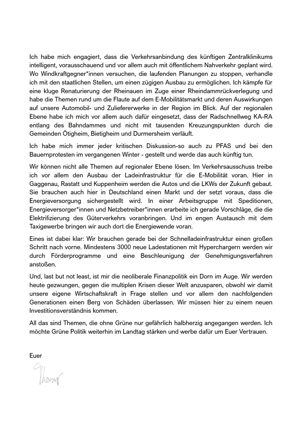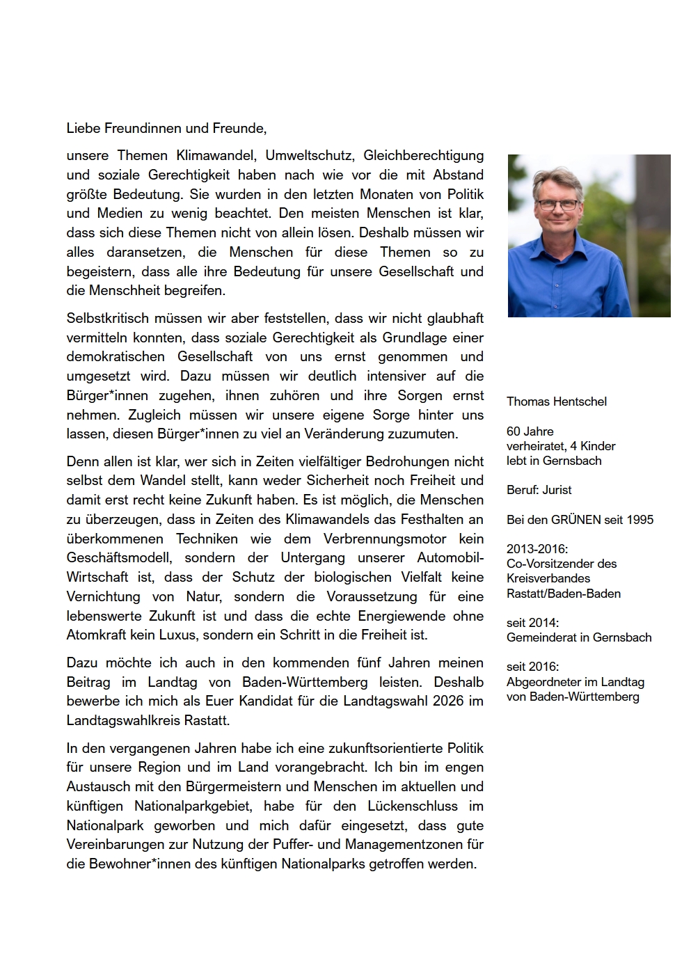 Dazu möchte ich auch in den kommenden Jahren meinen Beitrag im Landtag von Baden-Württemberg leisten und deshalb bewerbe ich mich am Freitag, den 14. März in der Mitgliederversammlung der GRÜNEN in Rastatt um die Kandidatur für den Wahlkreis Rastatt.