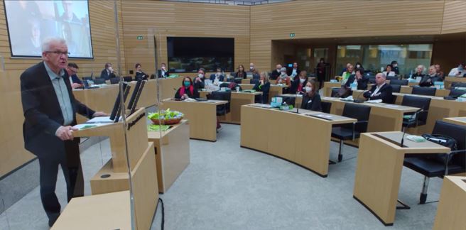 Gemeinsame Fraktionssitzung der Fraktion GRÜNE der 16. und 17. Legislatur digital und im Plenarsaal im Landtag von Baden-Württemberg
