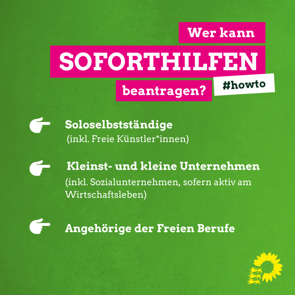 Der jetzt vorliegende Programmentwurf für einen einmaligen, nicht rückzahlbaren Zuschuss solle der Liquiditätsüberbrückung zunächst für drei Monate dienen, so der Grünen-Abgeordnete. In Abhängigkeit vom weiteren Verlauf der Krise könnten anschließend die Liquidität und Existenz der Unternehmen und der Angehörigen der Freien Berufe durch eine Zuwendung mit Rückzahlungsvorbehalt langfristig gesichert werden.