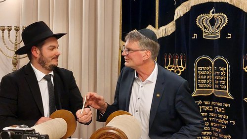 Ich fühle mich geehrt, dass ich den Rabbiner der Israelitischen Kultusgemeinde Baden-Baden/Rastatt Daniel Naftoli Surovtsev sozusagen an der Schreibfeder beim Vollenden eines Buchstabens begleiten durfte.