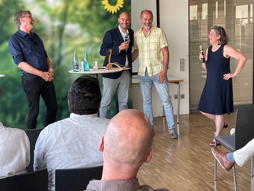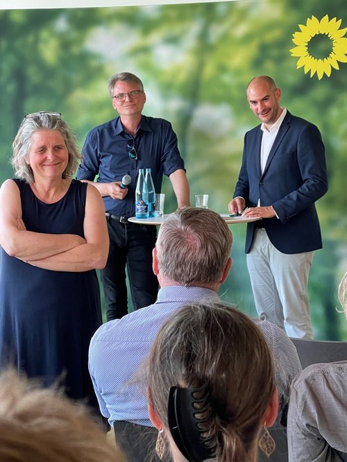 Am Abend fand eine Veranstaltung des Grünen Kreisverbandes Rastatt-Baden-Baden im Unimog-Museum in Gaggenau zum Thema "Nachhaltige Finanzen" statt, bei der der Finanzminister den Ansatz zur nachhaltigen Finanzpolitik der baden-württembergischen Landesregierung erläutert hat und wir uns den Fragen des Publikums stellten. Es war schön, dass so viele Interessierte trotz des sonnigen Wetters den Weg ins Unimog-Museum gefunden haben.