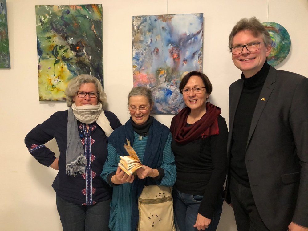 Zur Finisage der Ausstellung der Künstlerin Geneviève Moch im Wahlkreisbüro von Thomas Hentschel erschienen wieder zahlreiche Interessentinnen und Interessenten. Die Künstlerin konnte bei der Gelegenheit die Erlöse aus dem Verkauf ihrer Bilder in Höhe von jeweils 600 € an eine Vertreterin des Vereins Faire Welt Rastatt e. V. für die Schulische Ausbildung von jungen Frauen in Barama, Tansania und der Vertreterin der Naturfreunde in Rastatt, Uschi Böss – Walter für den Aufbau einer Schule für junge Frauen in St. Louis in im Senegal übergeben. Mit beeindrukenden Bildern und treffenden Worten wurde den Besuchern, die Arbeit der Projekte vor Ort vorgestellt.