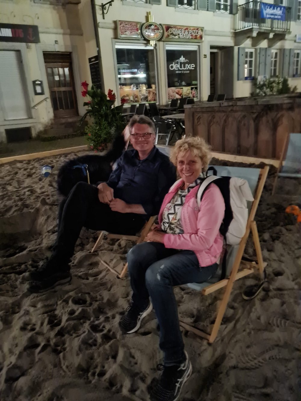 Am 10. August hatte ich bei einem Rundgang durch die Gernsbacher Altstadt Gelegenheit zu einem Austausch mit Christina Hartmann, der Inhaberin von Christina Hartmann-Uhren und Schmuck, am Alten Rathaus. Natürlich haben wir auch gleich die Liegestühle am neuen „Strand“ in der Altstadt getestet.