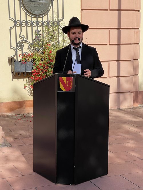 Eine besonders bewegende Rede hielt der Rabbiner der Kultusgemeinde Baden-Baden/Rastatt Daniel Naftoli Surovtsev. Er sagte, dass alle Mitglieder der Gemeinde entweder Verwandte oder Freunde in Israel hätten. Er stellte aber auch kritische Fragen-warum müssen jüdische Einrichtungen in Deutschland und Frankreich besonders geschützt werden? Warum verurteilen deutsche islamische Gemeinden nicht den Terror?