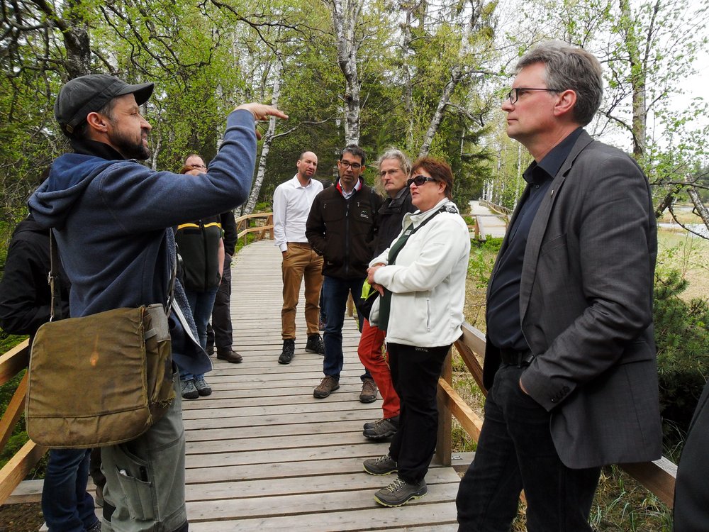 Auf Einladung des Abgeordneten Hentschel besuchte Dr. Andre Baumann, Staatssekretär am Umweltministerium Baden-Württemberg, das Infozentrum und das Hochmoor auf dem Kaltenbronn. Zusammen mit Naturschutzbeauftragten des Landkreises, Vertretern des Forstes Baden-Württemberg, sowie den Bürgermeistern Julian Christ (Gernsbach) und Petra Nych (Enzklösterle) als auch den Mitarbeitern des Infozentrums, wurde sich in einer großen Gesprächsrunde über Themen wie Tourismuskonzepte und über die Erhaltung der bedeutsamen Hochmoorlandschaft ausgetauscht.