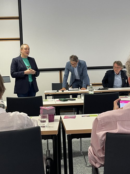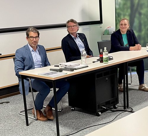 An der anschließenden Diskussion nahm auch Patricia Moock, die Geschäftsführerin von 4L Impact Strategies teil. Die Firma berät mittelständische Unternehmen, Nachhaltigkeit sicher und zuverlässig in ihre Strategie zu integrieren.