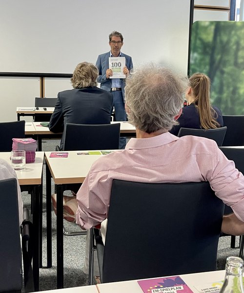 Er stellte ein Buch vor, das Betriebe vorstellt, die bereits „nachhaltig“, d.h. ressourcen-effizient, arbeiten.