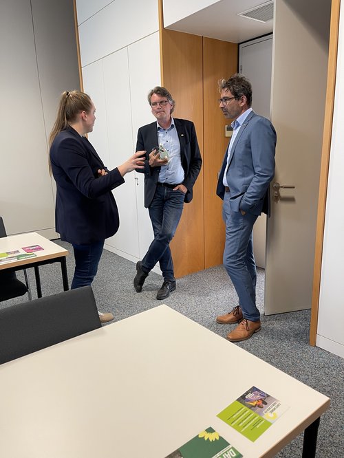 Im Anschluss an unseren Besuch bei Kronimus am 5. Juni 2024 fand dann im Papiermacherzentrum in Gernsbach noch eine Informationsveranstaltung des Grünen KV Rastatt Baden-Baden zum „Nachhaltigen Wirtschaften als Standortfaktor“ statt. Der Staatssekretär im Umweltministerium Dr. Andre Baumann hielt einen Impulsvortrag zur Grünen Wirtschaftspolitik: