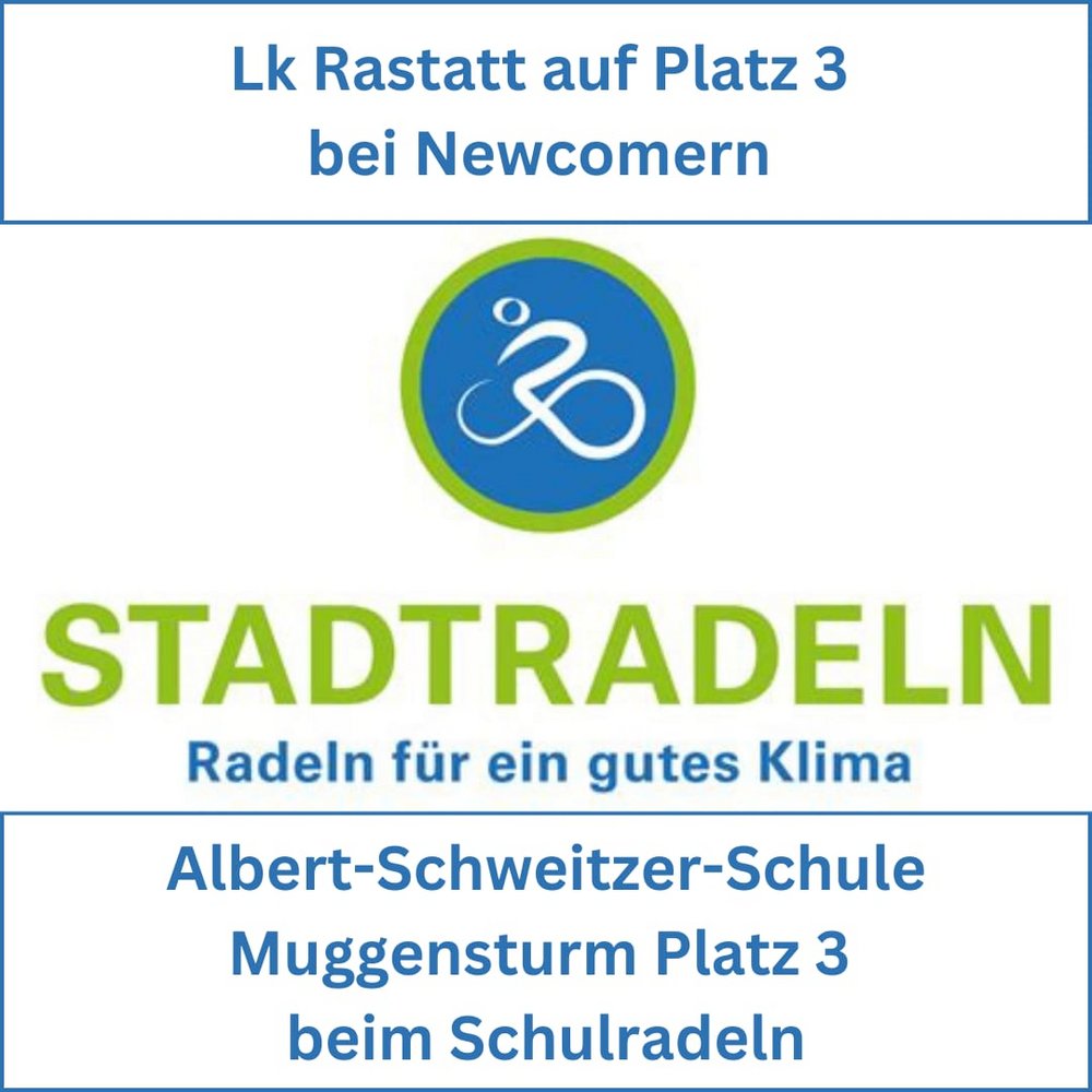 Der Landkreis Rastatt sowie die Albert-Schweitzer-Schule in Muggensturm haben dabei Besonderes geleistet. Der Landkreis belegte den dritten Platz unter den Newcomer-Kommunen mit 675.977 geradelten Kilometern, während die Albert-Schweitzer-Schule in Muggensturm ebenfalls den dritten Platz beim neuen Sonderwettbewerb „Schulradeln“ mit 52.747 geradelten Kilometern erreichte.