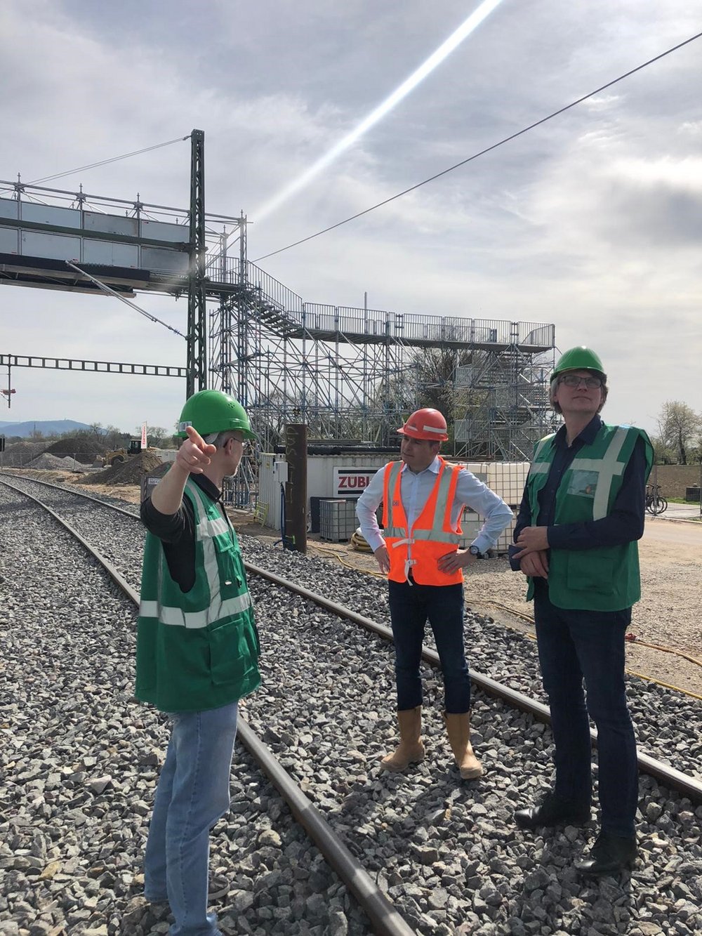 Der Landtagsabgeordnete Thomas Hentschel (GRÜNE) und der Bahnpolitiker der Grünen Bundestagsfraktion, Matthias Gastel MdB, ließen sich auf dem Baustellengelände in Rastatt- Niederbühl über den Fortschritt des Projektes Schnellbahntunnel Rastatt unterrichten. Dabei erfuhren sie, dass es während des bevorstehenden Ausbaus der Oströhre für den Schienenverkehr eine Umleitung über zwei eigens verlegte Gleise geben werde. Dadurch muss an dieser Stelle der Schienenverkehr zwar langsamer fahren, aber dennoch würden nur Verzögerungen von wenigen Sekunden entstehen. Allerdings werde es für die Anwohner während der nächsten Arbeiten, vor allem bei der Entfernung der Betonplatte ab Mai 2022 und im Jahr 2023 im Zuge der Trockenlegung der Tertiärbaugrube und dem Ausbau der zubetonierten zweiten Tunnelbohrmaschine, zu weiteren Lärmbelastungen kommen, teilten Vertreter der Bahn mit. Der Lärmschutz wird von der Deutschen Bahn sehr ernst genommen, dennoch sei besonders in der Phase des Abbaus der Betonplatte für die Bevölkerung in Niederbühl leider nochmals mehr Lärm zu erwarten. Man habe aber technisch sehr große Vorkehrungen getroffen, um die Belastungen so gering wie möglich zu halten, beispielsweise durch die Anbringung einer zusätzlichen Lärmschutzdämmung auf der schon errichteten Lärmschutzwand. Beide Politiker und die Vertreter der Deutschen Bahn brachten dazu ihren Dank für das Durchhaltevermögen der Anwohner zum Ausdruck.