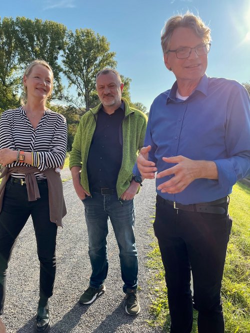 aus Wintersdorf, Daniela Schneider, und dem Ortsvorsteher aus Plittersdorf, Matthias Köppel über die Vorteile einer Renaturierung der Rheinauen.