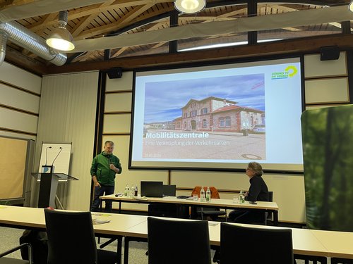 Stefan Krieg erläuterte, dass an einer Mobilitätszentrale unterschiedliche Formen der Mobilität miteinander verknüpft werden können.