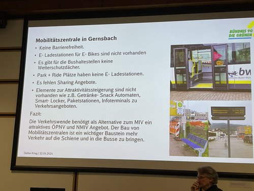 Stefan Krieg (Fraktionsvorsitzender Grüne Gernsbach) und ich gaben einen Überblick über die Bereiche Radverkehr und die Herausforderungen im Murgtal, Mobilitätszentrale und ihre Möglichkeiten sowie den ÖPNV im allgemeinen und die Barrierefreiheit.