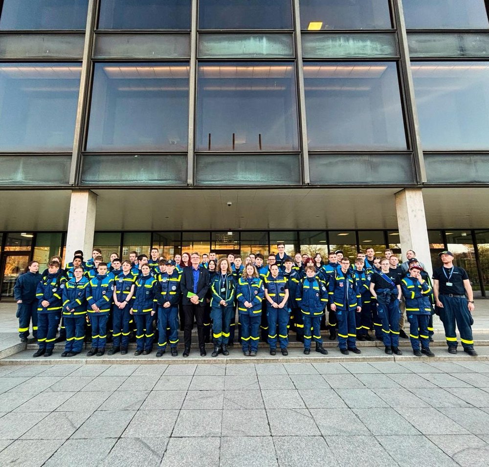 Eine Gruppe von 65 jungen Menschen aus ganz Deutschland, die sich beim technischen Hilfswerk engagieren und gerade an einer Jugendfreizeit in Baden-Württemberg teilnehmen, kamen am 26. März 2024 auf meine Einladung hin in den Landtag in Stuttgart.
